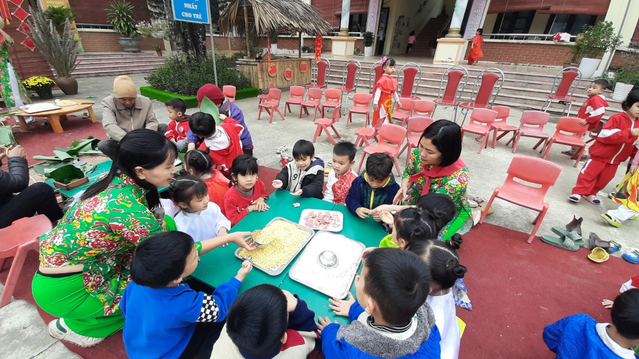31/01/2024 A- A A+ | Chương trình tết nhân ái năm 2024 trẻ được trải nghiệm gói bánh trưng và đi chợ tết quê em Xem Chia s? Thực hiện kế hoạch Số: 213/KH- MNHTA ngày 21 tháng 12 năm 2023 về việc tổ chức chương trình tết nhân ái năm 2024. Được sự ủng hộ nhiệt tình của các bậc phụ huynh đã ủng hộ các nguyên vật liệu, kinh phí để tổ chức cho trẻ được trải nghiêm các kỹ năng như quy trình gói bánh trưng và trải nghiệm đi chợ tết nhân ái giúp trẻ có kỹ năng trong cuộc sống biết sử dụng tiền mặt để mua, bán, biết nói lời cảm ơn , xin lỗi và biết chia sẻ yêu thương giúp đỡ người thân,bạn bè thông qua các hoạt động trải nghiệm dưới sự yêu thương nhiệt tình tâm huyết của các đồng chí CBGVNV trong nhà trường chương trình tết nhân ái thành công tốt đẹp Tập tin đính kèm Tải về