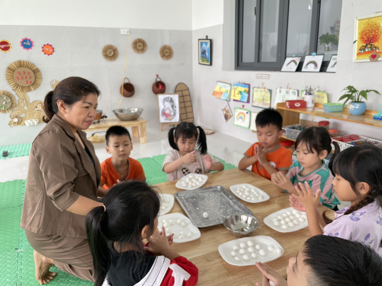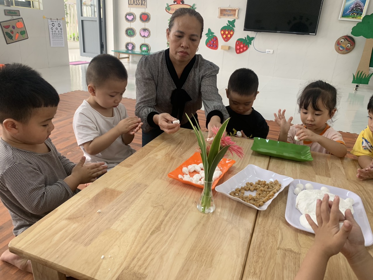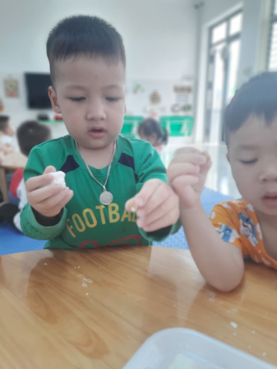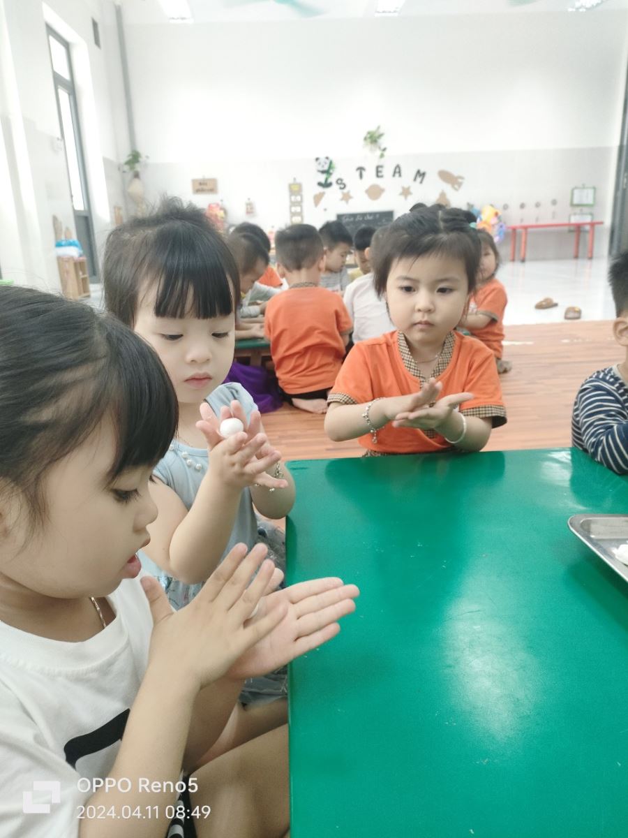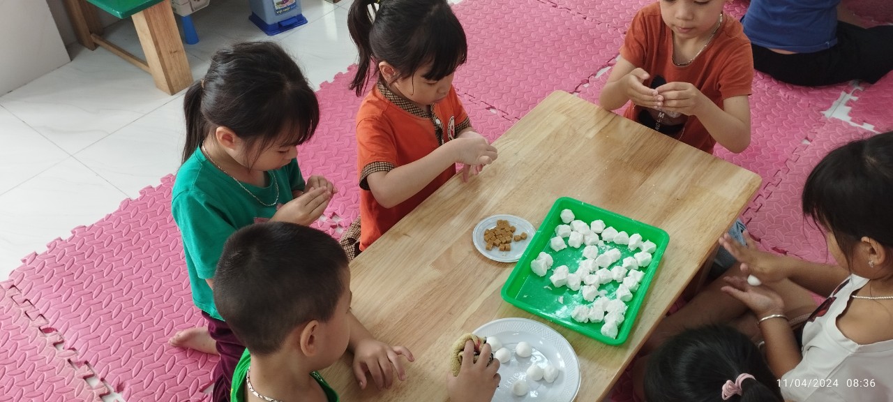 11/04/2024 A- A A+ | CHUYÊN ĐỀ GIÁO DỤC TRẺ THỰC HÀNH TRẢI NGHIỆM LÀM BÁNH TRÔI Xem Chia s? HOẠT ĐỘNG THỰC HÀNH TRẢI NGHIỆM LÀM BÁNH TRÔI NHÂN NGÀY TẾT HÀN THỰC 3/3 AL Hoạt động thực hành trải nghiệm làm bánh trôi nhân ngày tết Hàn thực 3/3 âm lịch nhằm để giáo dục các bé về ý nghĩa của ngày Tết Hàn Thực cũng như mang lại niềm vui, hứng khởi cho các con. Sáng ngày 11/04/2024 (03/03 âm lịch), trường mầm non Hợp Tiến A đã cùng phối hợp với phụ huynh tặng bột, nhân để tổ chức cho các bé được trải nghiệm nặn bánh trôi tại 19 nhóm lớp. 🍀 Ngay từ sáng sớm các bé đã háo hức đến trường để tham gia hoạt động, các cô giáo cũng chuẩn bị đầy đủ nguyên liệu cho buổi thực hành kỹ năng nặn bánh trôi. 🍀 Trước khi bắt tay vào làm, các bạn nhỏ được cô giáo kể về ý nghĩa của ngày tết Hàn thực và trò chuyện xác định các quy trình, các nguyên vật liệu để làm bánh trôi. Các bé được tự tay nhào lặn, quan sát luộc bánh, được tự tay trang trí cho đĩa bánh và thưởng thức những viên bánh xinh xắn do tự tay mình nặn. 🍀 Hoạt động hôm nay đã đem đến cho trẻ nhiều hứng thú, nhiều niềm vui và những trải nghiệm khó quên. Sau đây là một số hình ảnh của hoạt động: Tập tin đính kèm Tải về