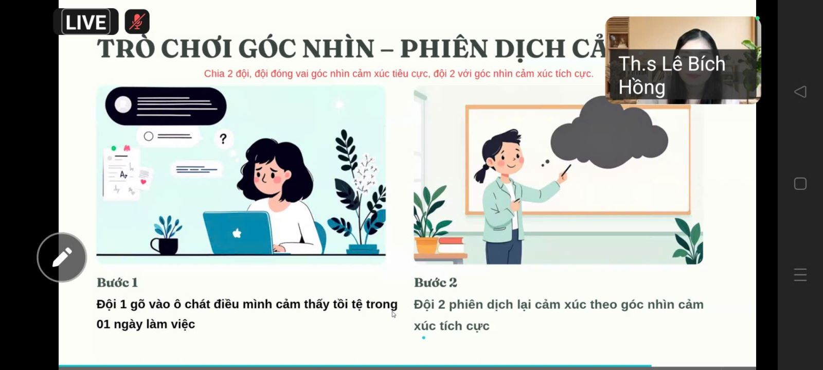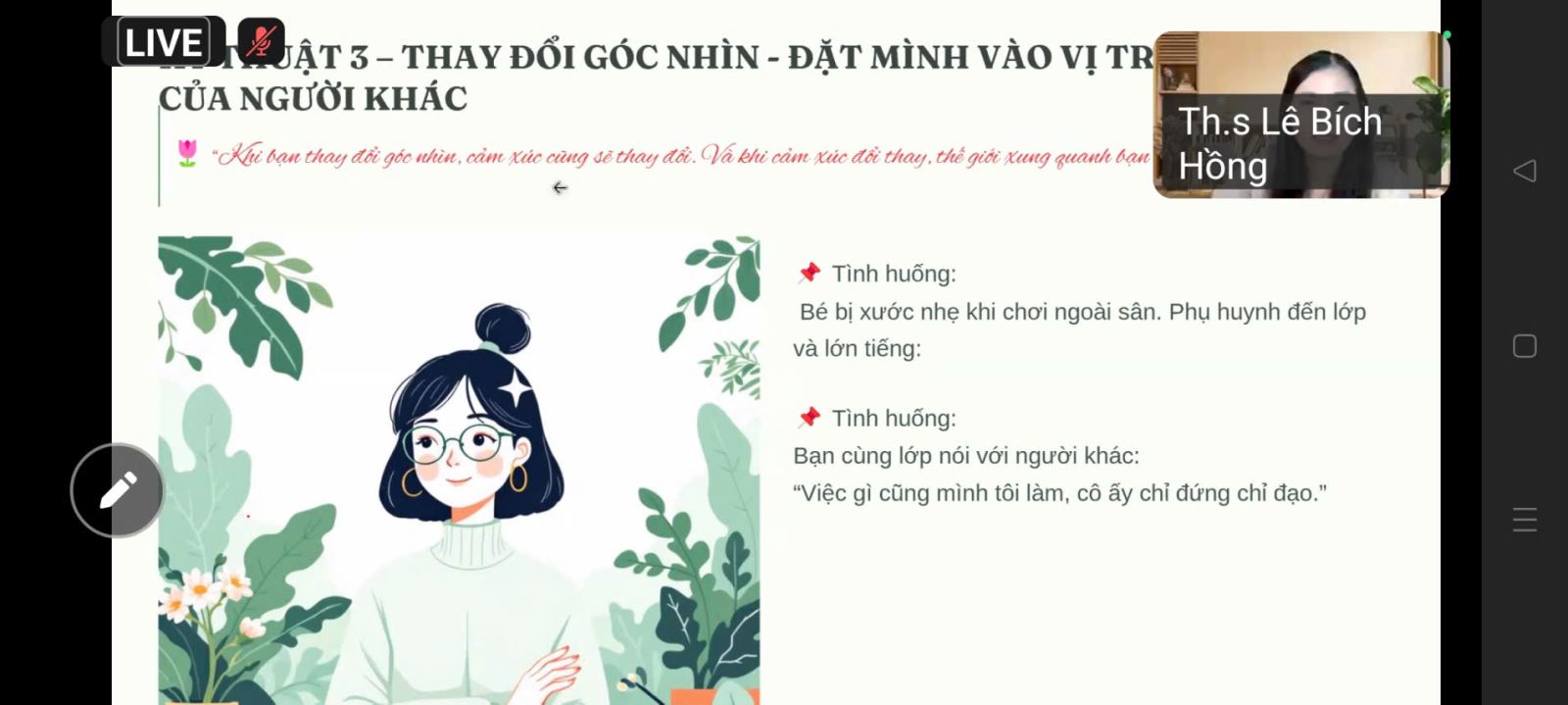 28/07/2025 A- A A+ | CHUYÊN ĐỀ HÈ 2025 Modul VĂN HÓA GIAO TIẾP - QUẢN TRỊ CẢM XÚC Xem Chia s? 🎓CHUYÊN ĐỀ HÈ 2025 - LAN TỎA GIÁ TRỊ YÊU THƯƠNG & NHÂN VĂN 💕Thực hiện kế hoạch bồi dưỡng chuyên môn nghiệp vụ hè năm 2025, trong 2 ngày 20 và 27/7/2025, tập thể CBGVNV Trường Mầm non Hợp Tiến A đã tích cực tham gia chuyên đề: “Văn hóa giao tiếp, quản trị cảm xúc trong môi trường giáo dục mầm non”. 💡 Với sự đồng hành của Thạc Sĩ cô Lê Thị Bích Hồng – giảng viên tâm huyết, đầy kinh nghiệm, 2 buổi tập huấn đã mang đến nhiều giá trị sâu sắc, thiết thực và truyền cảm hứng mạnh mẽ cho đội ngũ giáo viên, nhân viên nhà trường. 🌼 Những chia sẻ chân thành, thấm đẫm tình yêu nghề của cô không chỉ giúp mỗi người soi chiếu lại bản thân trong hành trình nuôi dưỡng tâm hồn trẻ thơ, mà còn tiếp thêm động lực để lan tỏa yêu thương, xây dựng một môi trường giáo dục nhân văn – tích cực – hạnh phúc. ❤️ Tập thể CBGVNV Trường Mầm non Hợp Tiến A xin gửi lời cảm ơn chân thành và sâu sắc nhất tới cô Lê Thị Bích Hồng! Cảm ơn cô vì đã “chạm” đến trái tim những người làm nghề cao quý bằng sự chuyên nghiệp và tận tâm. #TrườngMNHợpTiếnA #ChuyênĐềHè2025 #CôLêThịBíchHồng #VănHóaGiaoTiếp #QuảnTrịCảmXúc #NgôiTrườngHạnhPhúc Tập tin đính kèm Tải về