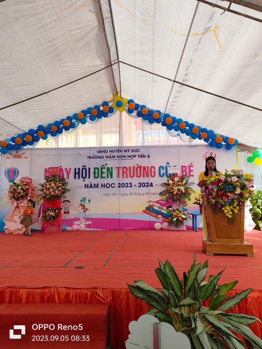05/09/2023 A- A A+ | HÂN HOAN CHÀO ĐÓN NĂM HỌC MỚI 2023-2024 ĐẦY THẮNG LỢI Xem Chia s? CHÀO ĐÓN NĂM HỌC MỚI 2023-2024 Kính thưa các quý vị đại biểu khách quý! Kính thưa các bậc phụ huynh học sinh cùng các đồng chí cán bộ giáo viên nhân viên và các bé học sinh yêu quý! Hoà trong không khí phấn khởi của cả nước đang tưng bừng chào mừng kỷ niệm cách mạng tháng tám và Quốc khánh 2/9, cùng với hàng triệu học sinh trong cả nước đón chào năm học mới. Trường mầm non Hợp tiến A đã long trọng tổ chức Ngày hội đến trường của bé năm học 2023 - 2024. Đến với ngày hội khai giảng nhà trường rất vinh dự được đón tiếp các đồng chí lãnh đạo Đảng uỷ, HĐND-UBND xã về dự, tặng hoa chúc mừng tập thể nhà trường đại diện có: 1. Đồng chí Nguyễn Văn Bái- Phó Bí thư Thường trực Đảng ủy 2. Đồng chí Đào Thị Luyến – Đảng ủy viên 3. Đ/c: Hoàng Gia Trối – Chủ tịch Hội Nông Dân xã 4. Đ/c: Trần Trọng Quyển – Trưởng thôn Thượng Quất 5. Đ/c Đỗ Văn Hoàng – Trưởng Thôn Hạ Quất + Đại diện Nguyên Lãnh đạo nhà trường, hội Cựu giáo chức Xã Bà Lê Thị Bắc thành viên về dự + Đại diện ban thường trực phụ huynh học sinh có: - Ông Nguyễn Thế Mộng – Trưởng ban thường trực hội cha mẹ học sinh - Ông Hoàng Gia Trối - Phó ban thường trực hội cha mẹ học sinh + Đại diện các công ty cung ứng thực đã đến chúc mừng và tặng hoa ngày hội gồm: - Ông Nguyễn Văn Quang – Giám đốc công ty Dịch vụ thương mại Sữa -Ông Nguyễn Đức Manh – Giám đốc công ty thực phẩm sạch -Ông Nguyễn Danh Cường – Đại diện công ty rau sạch Và đặc biệt về dự ngày hội còn có đông đủ CB,GV,NV Phụ huynh học sinh cùng các bé của 19 nhóm lớp. Đã tổ chức ngày hội đến trường của bé rất thành công! Thay mặt BTC xin trân trọng cảm ơn sự có mặt của quý vị đại biểu khách quý, các đồng chí CBGVNV, các bậc phụ huynh và các con đã về dự ngày hôm nay. Cảm ơn Ban an ninh, Dàn nhạc công, cảm ơn Đội văn nghệ nhà trường đã mang đến ngày hội của chúng ta hôm nay những tiết mục văn nghệ đặc sắc góp phần làm nên thành công của ngày hội. Xin kính chúc quý đại biểu khách quý,các đồng chí CBGVNV, các bậc phụ huynh và các con lời chúc sức khoẻ, hạnh phúc, chúc cho một năm học mới của toàn ngành Giáo Dục nói trung và tập thể sư phạm trường Mầm non Hợp Tiến A của chúng ta gặt hái được nhiều thành công, tháng lợi mới. Xin trân trọng cảm ơn! Sau đây là một số hình ảnh tiêu biểu của ngày hội Tập tin đính kèm Tải về