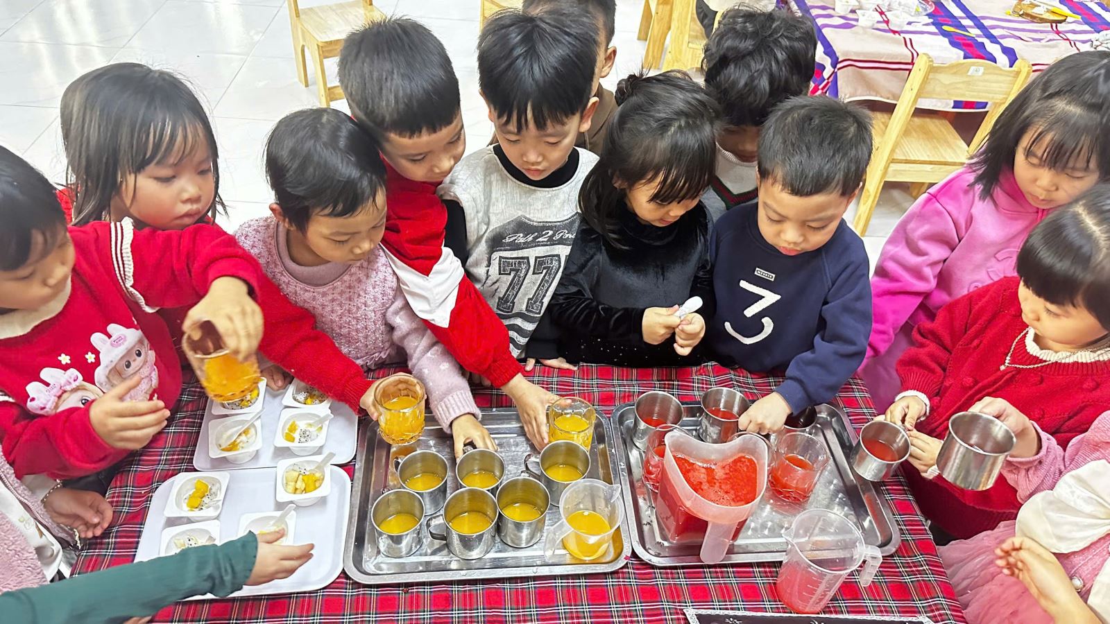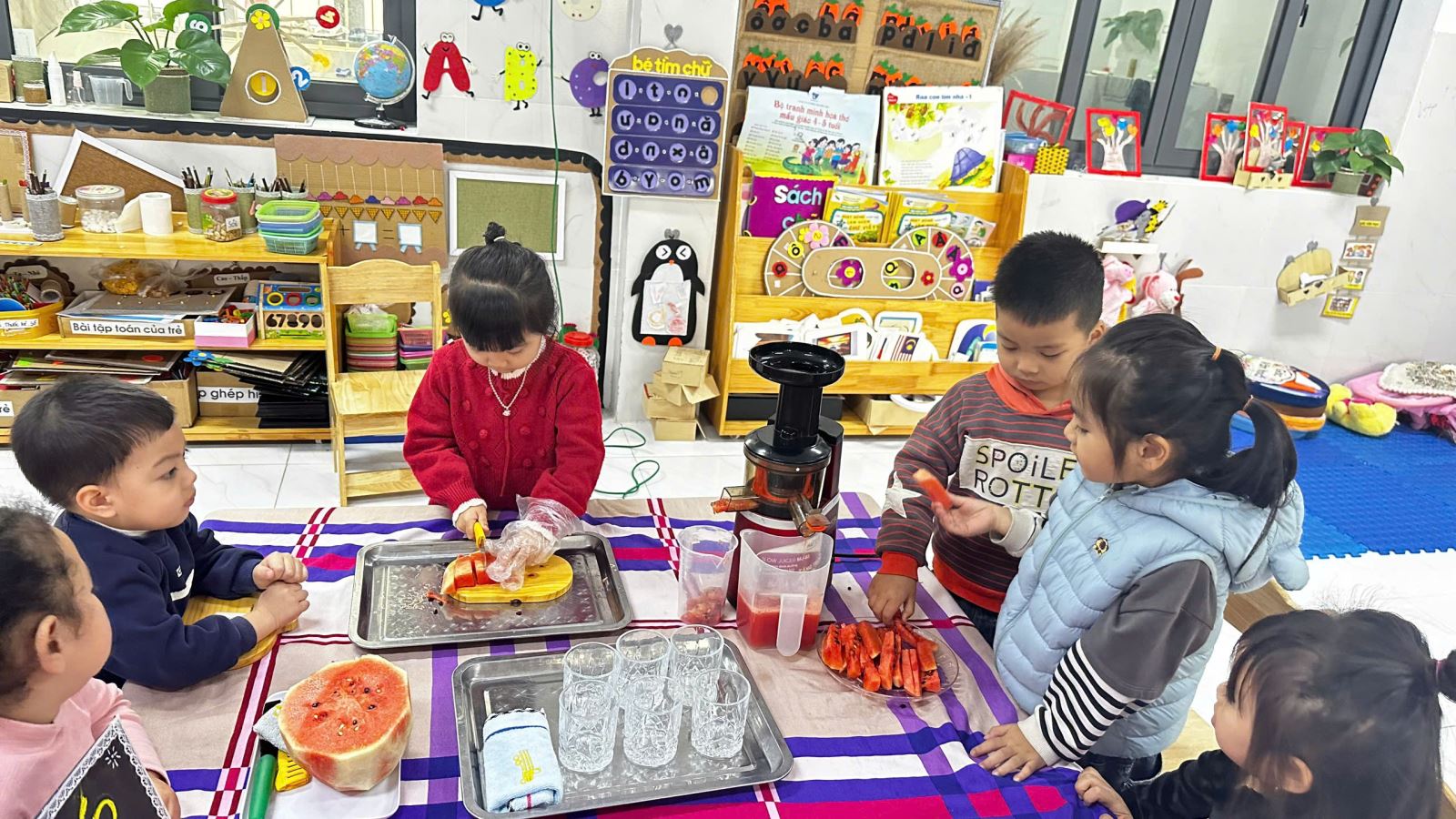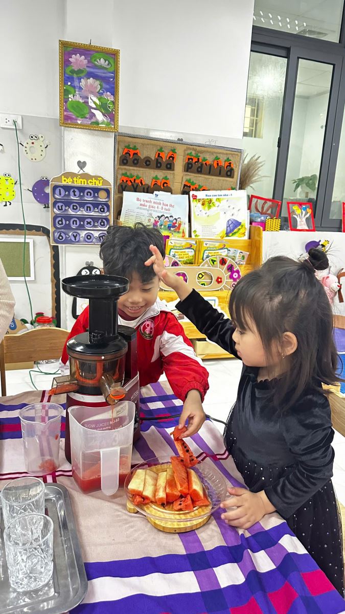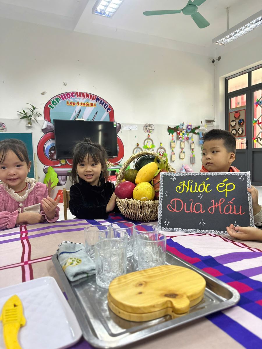 22/02/2025 A- A A+ | HOẠT ĐỘNG TRẢI NGHIỆM CỦA CÁC BÉ LỚP 4 TUỔI B1 - BÉ KHÉO TAY-VUI HỌC HAY Xem Chia s? 🍊🍉 Hoạt Động Trải Nghiệm Của Lớp 4 Tuổi B1 – Bé Khéo Tay, Vui Học Hay! 🍎🍌 Hôm nay, các bạn nhỏ lớp 4TuổiB1 đã có một giờ học thật vui và bổ ích với hoạt động trải nghiệm Vắt nước cam, nước ép dưa hấu và làm sữa chua hoa quả! 🌟 👩🍳 Bé hóa “đầu bếp nhí”, tự tay vắt từng giọt nước cam mát lạnh, ép những ly nước dưa hấu đỏ tươi và cùng nhau cắt thái các loại quả như chuối, táo, nho… để làm nên những cốc sữa chua hoa quả thơm ngon. Không chỉ học cách chế biến món ăn, các bé còn rèn luyện đôi tay khéo léo, phát triển kỹ năng phối hợp và đặc biệt là học cách yêu thích thực phẩm sạch, dinh dưỡng. 🥄 Khi được tự tay làm, bé nào cũng háo hức, cẩn thận và vui vẻ thưởng thức thành quả của mình. Qua hoạt động này, các bé không chỉ hiểu hơn về lợi ích của trái cây đối với sức khỏe mà còn học được tinh thần hợp tác, chia sẻ và sự tự lập trong cuộc sống. 🎥📸 Mời bố mẹ cùng xem những hình ảnh đáng yêu của các bé trong hoạt động hôm nay nhé! Hãy cùng đồng hành để giúp con có thêm nhiều trải nghiệm ý nghĩa mỗi ngày! ❤️ #4TuổiB1 #TrảiNghiệmBổÍch #BéYêuBếpNhỏ #HọcMàChơiChơiMàHọc Tập tin đính kèm Tải về
