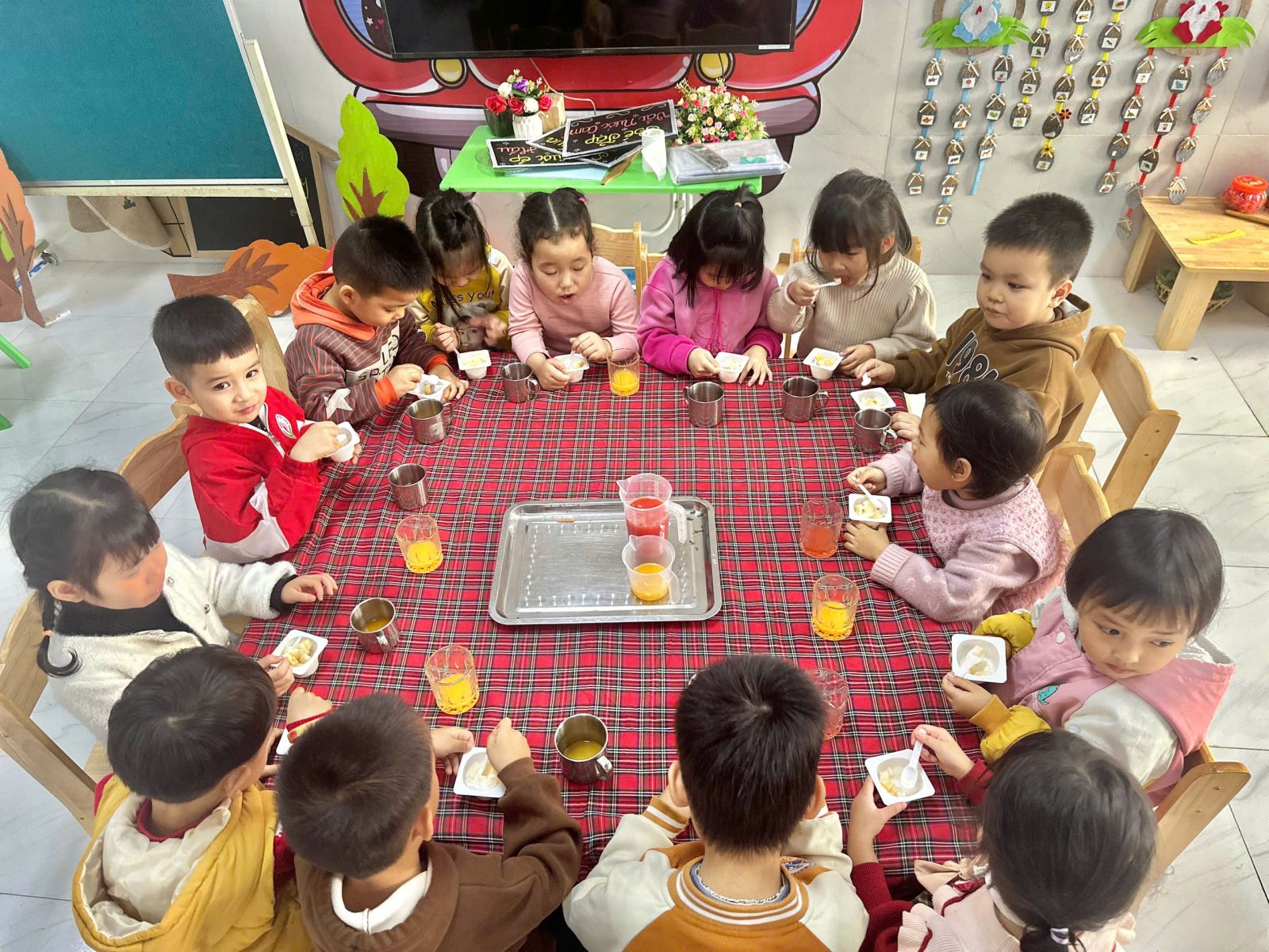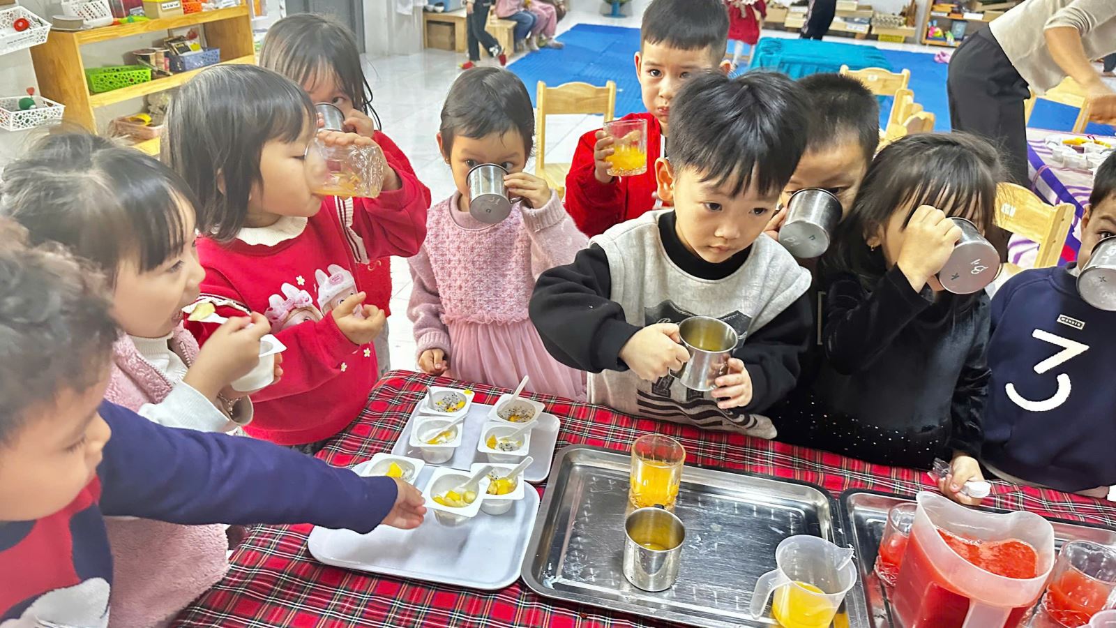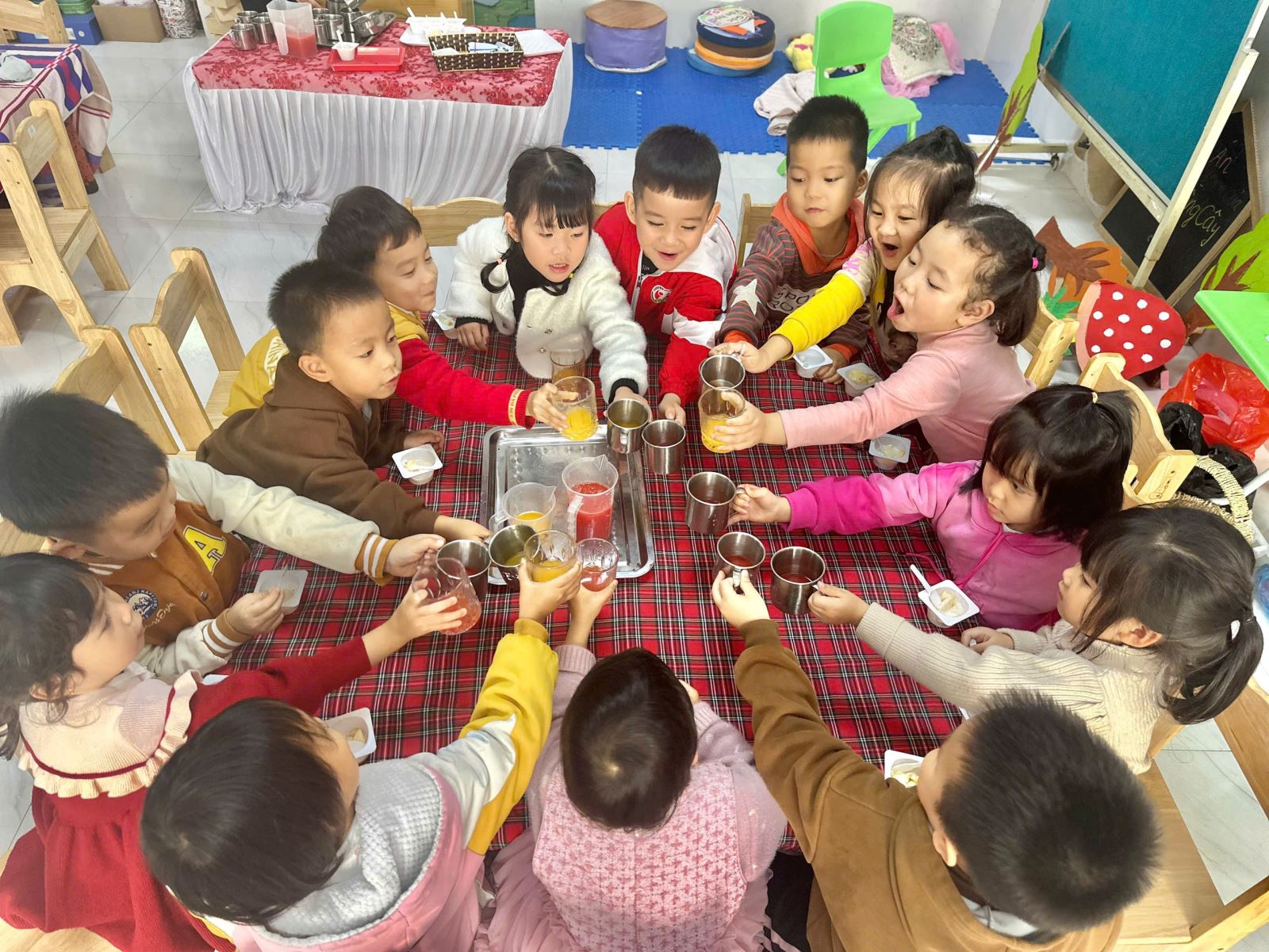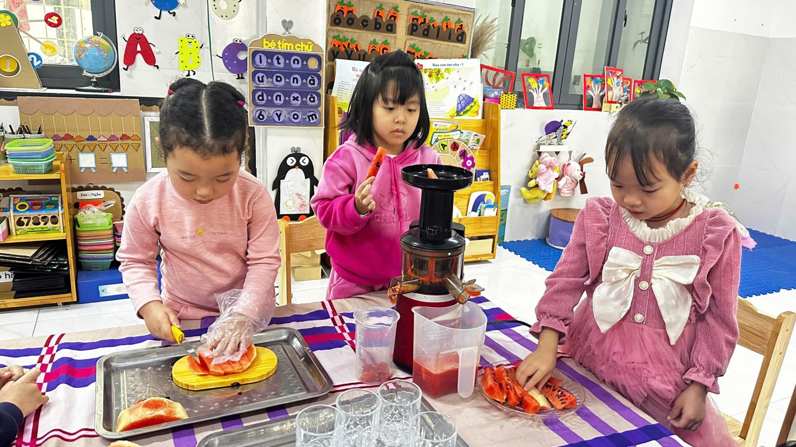 22/02/2025 A- A A+ | HOẠT ĐỘNG TRẢI NGHIỆM CỦA CÁC BÉ LỚP 4 TUỔI B1 - BÉ KHÉO TAY-VUI HỌC HAY Xem Chia s? 🍊🍉 Hoạt Động Trải Nghiệm Của Lớp 4 Tuổi B1 – Bé Khéo Tay, Vui Học Hay! 🍎🍌 Hôm nay, các bạn nhỏ lớp 4TuổiB1 đã có một giờ học thật vui và bổ ích với hoạt động trải nghiệm Vắt nước cam, nước ép dưa hấu và làm sữa chua hoa quả! 🌟 👩🍳 Bé hóa “đầu bếp nhí”, tự tay vắt từng giọt nước cam mát lạnh, ép những ly nước dưa hấu đỏ tươi và cùng nhau cắt thái các loại quả như chuối, táo, nho… để làm nên những cốc sữa chua hoa quả thơm ngon. Không chỉ học cách chế biến món ăn, các bé còn rèn luyện đôi tay khéo léo, phát triển kỹ năng phối hợp và đặc biệt là học cách yêu thích thực phẩm sạch, dinh dưỡng. 🥄 Khi được tự tay làm, bé nào cũng háo hức, cẩn thận và vui vẻ thưởng thức thành quả của mình. Qua hoạt động này, các bé không chỉ hiểu hơn về lợi ích của trái cây đối với sức khỏe mà còn học được tinh thần hợp tác, chia sẻ và sự tự lập trong cuộc sống. 🎥📸 Mời bố mẹ cùng xem những hình ảnh đáng yêu của các bé trong hoạt động hôm nay nhé! Hãy cùng đồng hành để giúp con có thêm nhiều trải nghiệm ý nghĩa mỗi ngày! ❤️ #4TuổiB1 #TrảiNghiệmBổÍch #BéYêuBếpNhỏ #HọcMàChơiChơiMàHọc Tập tin đính kèm Tải về