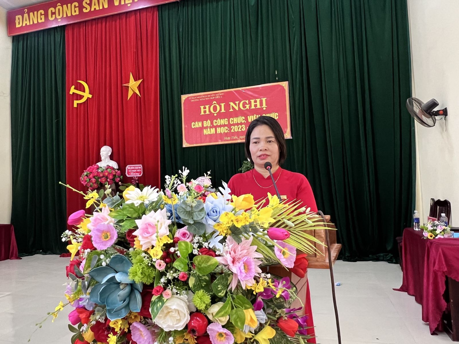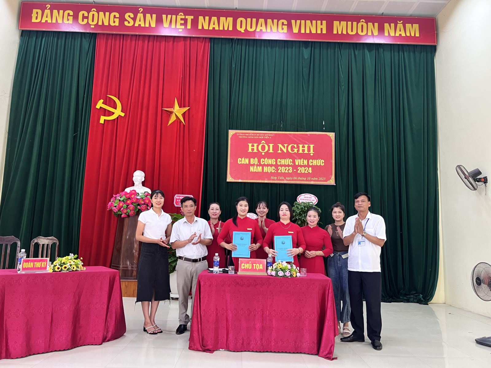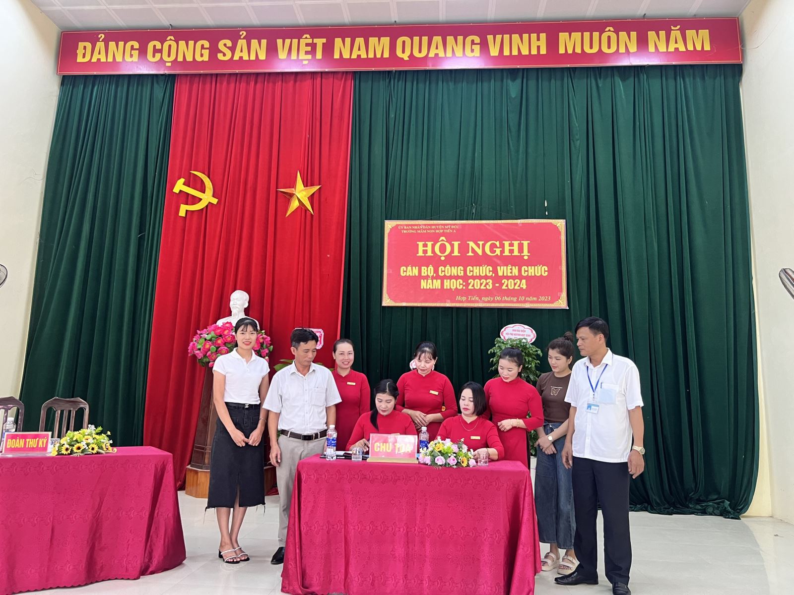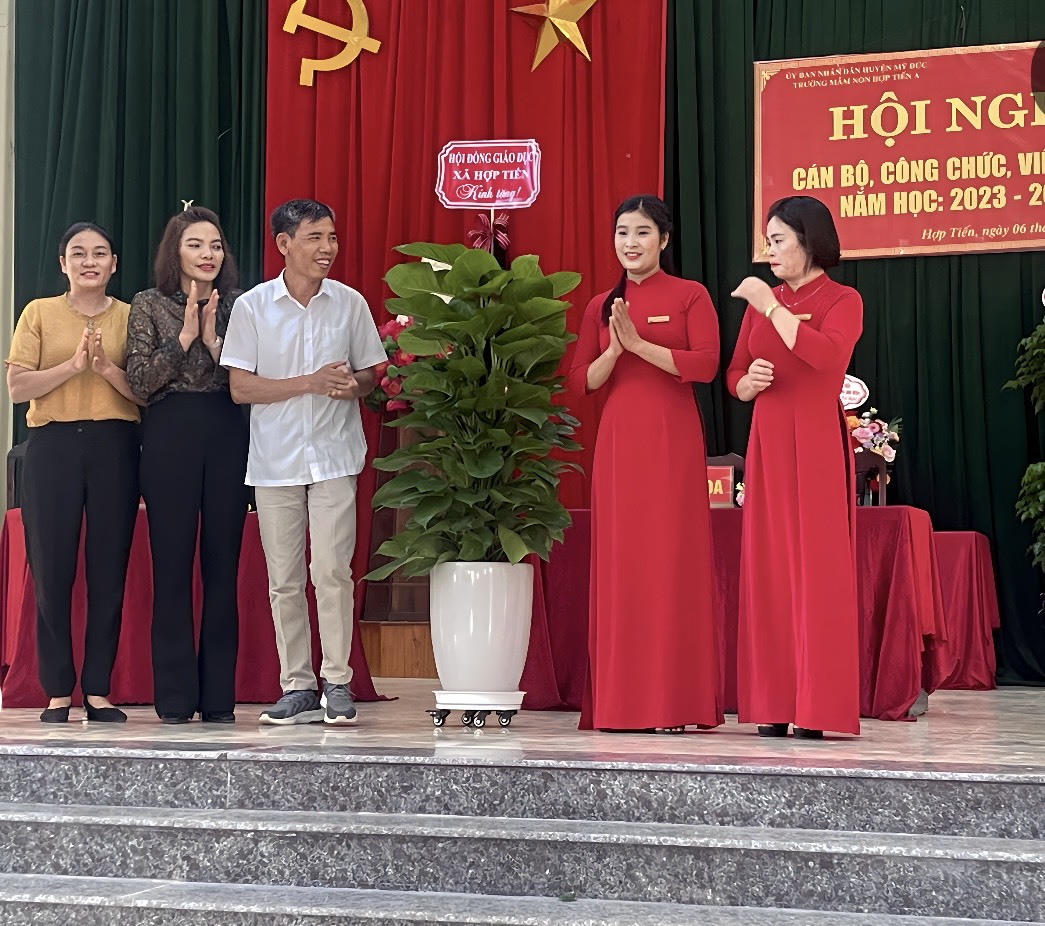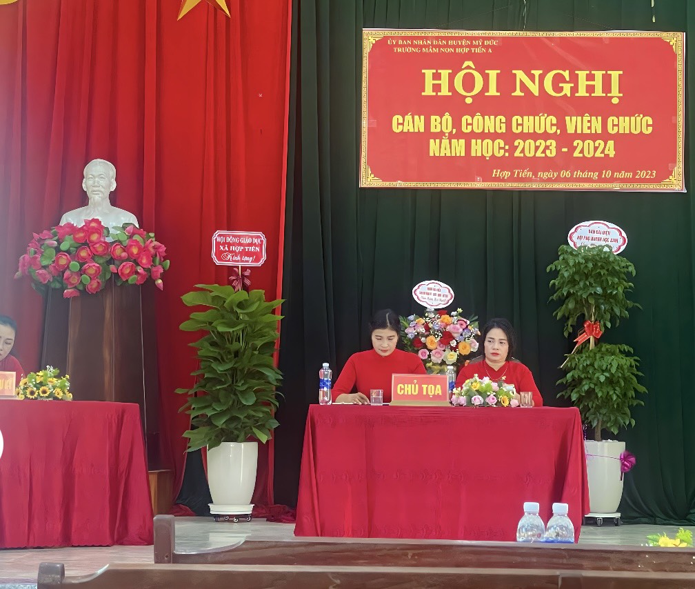 07/10/2023 A- A A+ | HỘI NGHỊ CÁN BỘ CÔNG CHỨC VIÊN CHỨC NĂM HỌC 2023-2024 Xem Chia s? HỘI NGHỊ CBCCVC NĂM HỌC 2023-2024 Thực hiện kế hoạch số 05/HD - LN ngày 5 tháng 09 năm 2023 về việc tổ chức hội nghị cán bộ, công chức, viên chức năm học 2023 - 2024 Hôn nay ngày 06 tháng 10 năm 2023 Trường mầm non Hợp Tiến A đã long trọng tổ chức Hội nghị CBCCVC người lao động năm học 2023 - 2024 nhằm đánh giá kết quả thực hiện Nghị quyết: Quy chế dân chủ năm học 2022 – 2023 và phương hướng chỉ tiêu nhiệm vụ năm học 2023 - 2024, đồng thời ký cam kết trách nhiệm giữa Công đoàn và nhà trường, phát động phong trào thi đua và giải đáp những thắc mắc của cán bộ viên chức trong nhà trường, giúp nhà trường thực hiện tốt nhiệm vụ năm học 2023 - 2024. Về dự với hội nghị cán bộ công chức viên chức của trường mầm non Hợp Tiến A ngày hôm nay có: +Đoàn đại biểu của xã Hợp Tiến có: 1.Đồng chí: Nguyễn Văn Bắc-Bí thư Đảng ủy-Chủ Tịch HĐND xã 2.Đồng chí Nguyễn Văn Bái- Phó Bí thư Thường trực Đảng ủy 3.Đồng chí Trần Văn Phiu - Phó bí thư Đảng ủy- Chủ tịch UBND xã 4.Đồng chí Trần Văn Hừng - Đảng ủy viên-Phó chủ tịch UBND xã 5.Đồng chí Nguyễn Đình Chất - Đảng ủy viên-Phó chủ tịch UBND xã 6.Đồng chí Đào Thị Luyến - Đảng ủy viên- phụ trách Cùng các đồng chí trong ban thường trực Đảng ủy, HĐND,UBND, MTTQ xã đã về dự đã có giỏ Hoa chúc mừng Hội Nghị. + Đoàn đại biểu Hội đồng Giáo Dục xã Hợp Tiến Có Các đồng chí Bí thư chi bộ - Hiệu trưởng các trường MN, TH,THCS đã về dự và có chậu cây xanh chúc mừng hội nghị. + Đại biểu đại diện Hội phụ huynh học sinh có: -Ông Hoàng Gia Trối - Phó Trưởng ban thường trực hội ông bà cha mẹ học sinh toàn trường cùng các ông bà trong ban thường trực hội cha mẹ học sinh toàn trường về dự đã có chậu cây xanh chúc mừng hội nghị. + Cùng về dự với hội nghị có các Đồng chí CB,GV,NV trong nhà trường về dự đông đủ: Sự hiện diện của các quý vị đại biểu ngày hôm nay là nguồn động viên khích lệ cho một năm học mới gặt hái được nhiều thành công, lập được nhiều thành tích cao. Tập thể nhà trường lấy đây là một kim chỉ nam cùng nhau xây dựng mối đại đoàn kết nhất trí cao thi đua, xây dựng phong trào nhà trường ngày một phát triển đi lên. T/M: Ban tổ chức tôi xin trân trọng cảm ơn các đc lãnh đạo Đảng Uỷ HĐND -UBND Cùng các đồng chí Bí thư chi bộ- trưởng thôn, Hội đồng giáo dục xã, Hội ông bà cha mẹ học sinh toàn trường đã bớt chút thời gian vàng ngọc cùng về dự với hội nghị, Xin được kính chúc các đc và gia đình luôn luôn mạnh khỏe - hạnh phúc và thành công. Xin trân trọng cảm ơn! Sau đây là một số hình ảnh tiêu biểu của hội nghị: Tập tin đính kèm Tải về