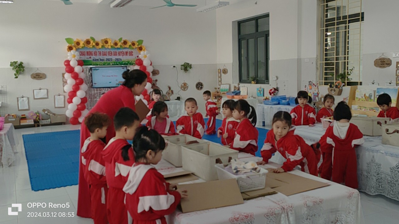 13/03/2024 A- A A+ | HỘI THI GIÁO VIÊN - NHÂN VIÊN NUÔI DƯỠNG GIỎI CẤP HUYỆN NĂM HỌC 2023-2024 Xem Chia s? Thực hiện nhiệm vụ năm học 2023 – 2024, hôm nay ngày 12/03/2024 trường MN Hợp Tiến A đã tổ chức thành công Hội thi Giáo viên – Nhân viên giỏi cấp cơ sở năm học 2023 – 2024. Để tạo nên thành công của hội thi ,với truyền thống đoàn kết ,chia sẻ, giúp đỡ lẫn nhau trong nhà trường, với sự quyết tâm, nỗ lực của tập thể sư phạm Trường Mầm non Hợp Tiến A , đã giúp đỡ một số đồng chí giáo viên, nhân viên tham gia trong hội thi hoàn thành tốt bài thi của mình và nhiệm vụ chung của nhà trường, đó là các đồng chí GV- NV có tên sau: 1: Đ/C: PHẠM THỊ HẢI -Tổ trưởng tổ mẫu giáo Chuyên đề: Giáo dục kỹ năng sống cho trẻ 5 tuổi Đề tài: Giáo dục kỹ năng " Nhận biết vùng riêng tư, phòng tránh hành vi an toàn, không an toàn cho trẻ." 2: ĐC: NGUYỄN THỊ DẠ LAN- Giáo viên Chuyên đề: Giáo dục kỹ năng sống cho trẻ 4 tuổi Đề tài: Giáo dục cho trẻ kỹ năng " Nói lời cảm ơn và xin lỗi." 3: ĐC: NGUYỄN THỊ OANH- Giáo viên Chuyên đề: Giáo dục kỹ năng sống cho trẻ 3 tuổi Đề tài: Giáo dục cho trẻ kỹ năng " Gấp quần áo." 4: ĐC: NGUYỄN THỊ PHƯỢNG - Tổ phó tổ Nhà trẻ Chuyên đề: Giáo dục kỹ năng sống cho trẻ nhà trẻ Đề tài: Giáo dục cho trẻ kỹ năng " Bỏ rác đúng nơi quy định." 5: ĐC: TRẦN THỊ PHIẾN -Tổ trưởng Tổ nuôi dưỡng Đề tài: Thông qua Hội thi nhằm giáo dục lồng ghép cho trẻ một số kỹ năng sống vào trong cuộc sống hành ngày. Qua đó hình thành cho trẻ biết ý thức, biết phòng tránh, nhận biết điều gì là tốt và không tốt đối với mình và dần hình thành cho trẻ thành con ngoan trò giỏi, lễ phép vâng lời ông bà cha mẹ. Đặc biệt thông qua hội thi, Trường Mầm Non Hợp Tiến A muốn quảng bá hình ảnh của nhà trường, tuyên truyền tới các bậc phụ huynh về cách chăm sóc ,nuôi dưỡng trẻ đảm bảo về chất và lượng với thực đơn phong phú,khẩu phần ăn đầy đủ các chất dinh dưỡng. Bên cạnh đó còn giúp cho các đồng chí GV-NV trong nhà trường nắm chắc hơn về nội dung, hình thức, phương pháp tổ chức các hoạt động giáo dục , giáo dục kỹ năng sống theo quan điểm "Giáo dục lấy trẻ làm trung tâm" thông qua các tình huống trong cuộc sống hàng ngày, nhằm hình thành nhân cách đúng đắn cho trẻ. Với sự nỗ lực, tích cực của các đồng chí GV- NV trong nhà trường, đã có rất nhiều tiết học tâm huyết, sáng tạo; nhiều món ăn ngon với thực đơn phong phú của các nhân viên cấp dưỡng đã thuyết phục những người tham dự với màu sắc đẹp mắt, hài hòa, hương vị hấp dẫn. Kết quả trên đã phản ánh sự đánh giá nghiêm túc của Ban giám khảo Hội thi với mong muốn khích lệ, động viên cho mọi Giáo viên, Nhân viên của nhà trường tiếp tục rèn luyện, phấn đấu để nâng cao chuyên môn nghiệp vụ của bản thân. Dưới đây là một số hình ảnh của Hội thi Giáo viên – Nhân viên giỏi cấp cơ sở năm học 2023 - 2024: Đề tài giáo dục trẻ kỹ năng bỏ rác đúng nơi quy định của đồng chí Nguyễn Thị Phượng ( trẻ nhà trẻ ) Đề tài giáo dục trẻ kỹ năng Gấp quần áo của đồng chí Nguyễn Thị 0anh ( trẻ MGB ) Đề tài giáo dục trẻ kỹ năng " Nói lời cảm ơn, xin lỗi" của đồng chí Nguyễn Thị Dạ Lan ( trẻ MGN ) Đề tài giáo dục trẻ kỹ năng " Nhận biết vùng riêng tư, phân biệt hành vi an toàn- không an toàn cho trẻ " của đồng chí Phạm Thị Hải ( trẻ MGL ) Phần dự thi của đông chí Trần thị Phiến - Nguyễn Thị Kim Dung ( tổ nuôi dưỡng ) Thành phần BGK HỘI THI Tập tin đính kèm Tải về