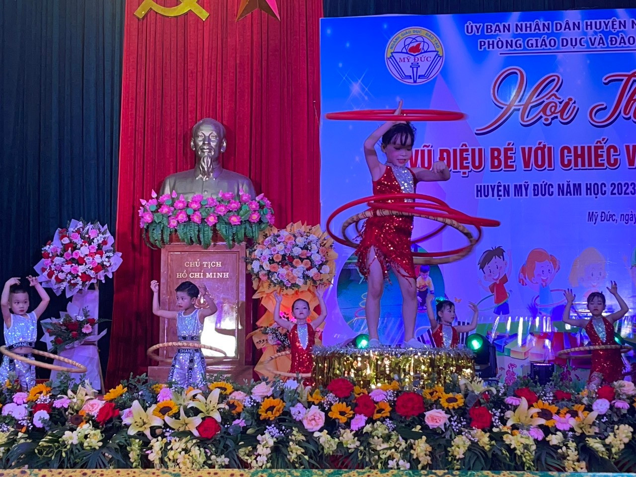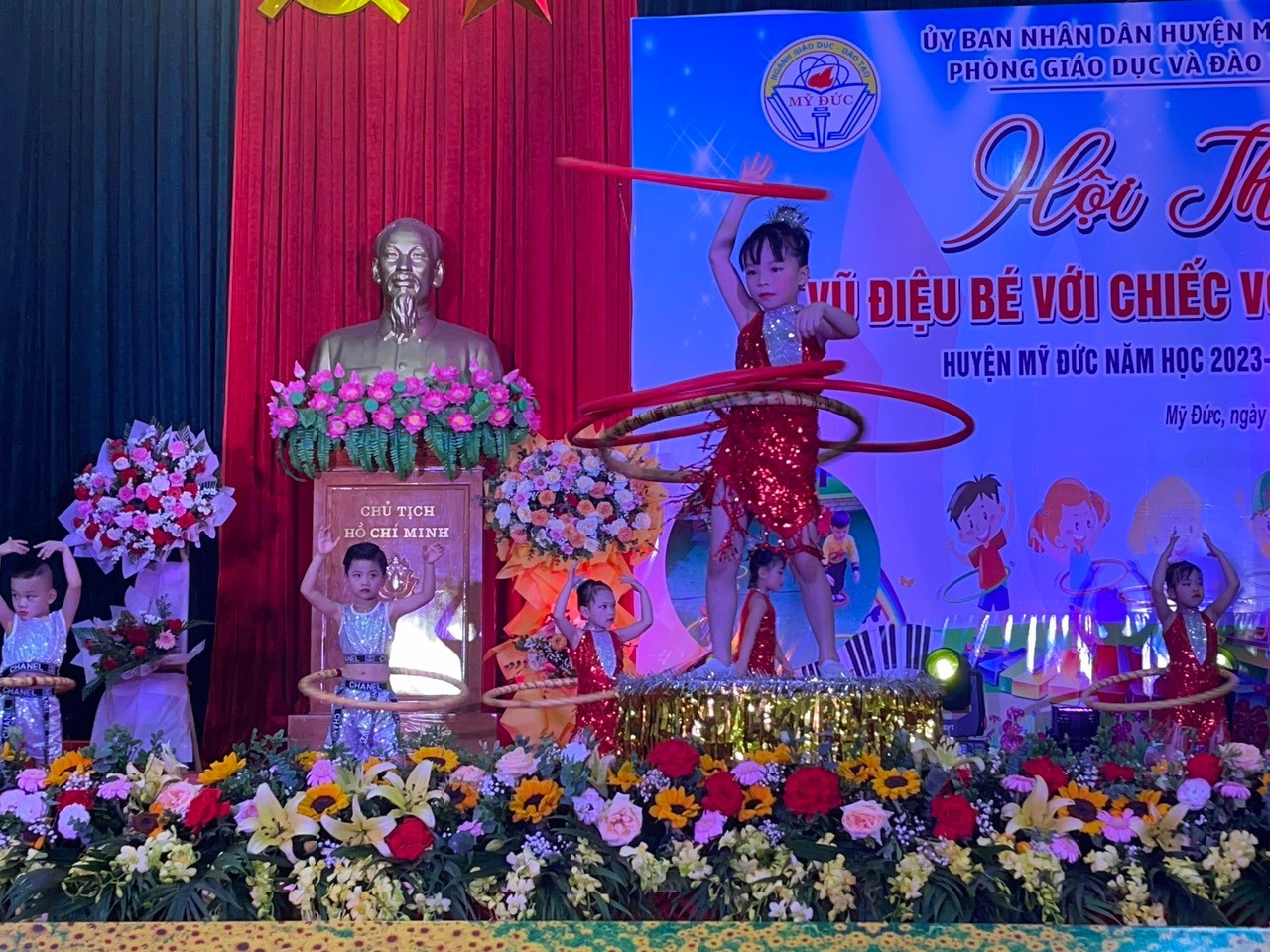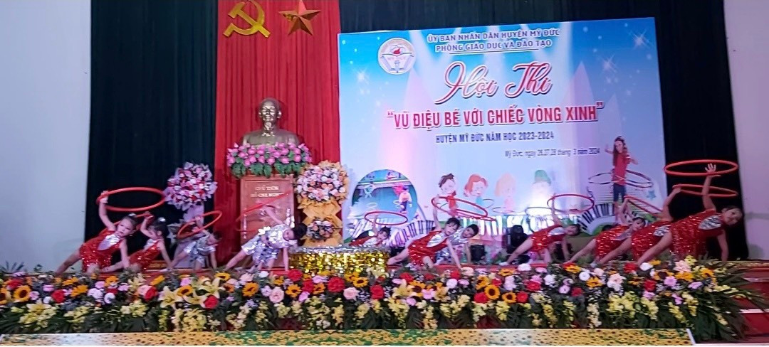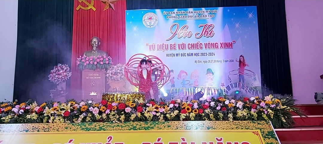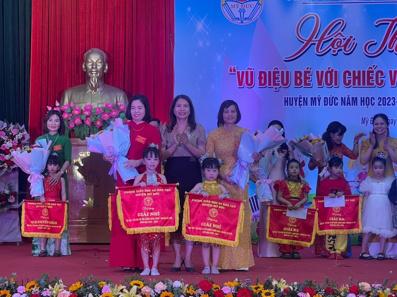 29/03/2024 A- A A+ | HỘI THI" VŨ ĐIỆU BÉ VỚI CHIẾC VÒNG XINH" NĂM 2023-2024 Xem Chia s? Thực hiện nhiệm vụ năm học 2023 - 2024 của cấp học mầm non huyện Mỹ Đức, nhằm đẩy mạnh tổ chức các hoạt động phát triển vận động, kỹ năng xã hội và thẩm mỹ cho trẻ mầm non, ngành GD&ĐT tổ chức Hội thi “Vũ điệu bé với chiếc vòng xinh ” Hôm nay ngày 27/3/2024 trường Mầm non Hợp Tiến A đã chọn ra 1 đội gồm 12 thành viên tham gia Hội thi “Vũ điệu bé với chiếc vòng xinh”. Với sự nỗ lực rèn luyện không ngừng nghỉ và cháy hết mình trên sân khấu các con đã hoàn thành xuất sắc phần thi của mình và đạt được giải Nhì cụm. Thay mặt nhà trường xin chân thành cảm ơn các cấp lãnh đạo đã tạo ra một sân chơi bổ ích để các con được giao lưu học hỏi. Xin chân thành cảm ơn các quý phụ huynh và tập thể Sư phạm Trường MN Hợp Tiến A luôn đoàn kết, giúp đỡ nhau để cùng nhau hoàn thành xuất sắc mọi nhiệm vụ được giao. Dưới đây là 1 số hình ảnh của hội thi. Tập tin đính kèm Tải về