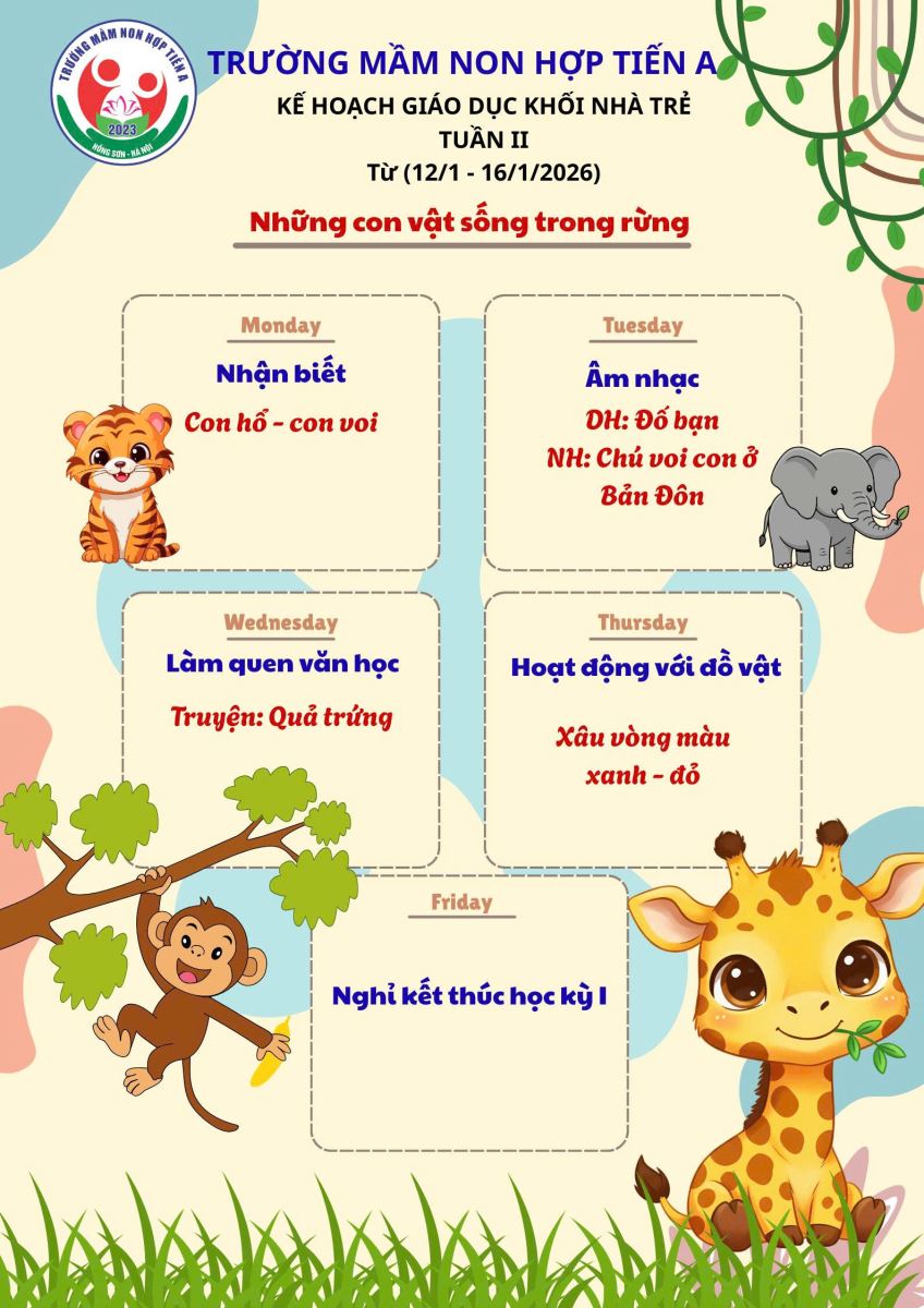 06/01/2026 A- A A+ | KẾ HOẠCH GIÁO DỤC KHỐI NHÀ TRẺ THÁNG 01/2026 Xem Chia s? Kế hoạch giáo dục tháng 01- Khối nhà trẻ (Từ ngày 05/01 đến ngày 30/01/2026) _____ ____ ❤️____ _____ Trường Mầm non Hợp Tiến A Tập tin đính kèm Tải về