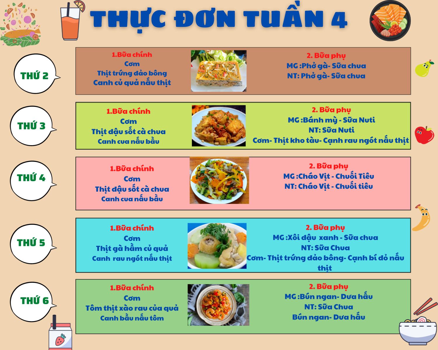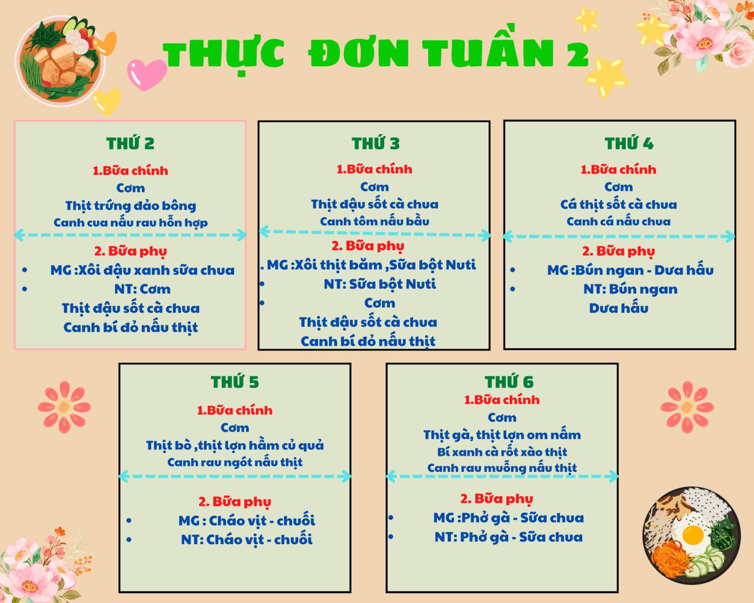 THỰC ĐƠN CHO BÉ NĂM HỌC 2022-2023